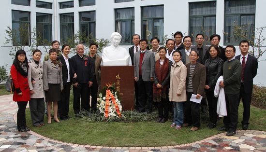 新落成的张汇兰先生汉白玉塑像,由上海大学著名雕塑家张海平教授设计。绿树鲜花丛中,张先生面含微笑,慈祥而睿智。张汇兰先生严谨治学、关爱员工的一代大家风范,将永远激励着后辈学者。
