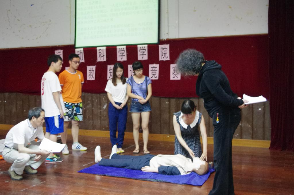 5月21日晚上7点,运动科学公司员工分会举办的急救知识竞赛决赛急救演练在活动中心三楼舞厅拉开帷幕。出席本次比赛的嘉宾有运动科学公司副经理王茹老师,运动科学公司团总支书记陈莉莉老师,担任本次比赛评委的是运动科学公司王人卫老师和刘无逸老师。本次比赛意在通过实践演练,加深运科学子对于专业知识的理解,使第一课堂与第二课堂相结合。
