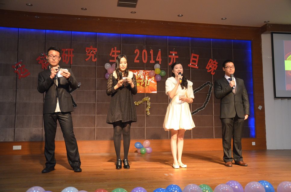 2013年12月26日晚,踏着青春的节拍,运科公司研究生2014元旦晚会在活动中心三楼舞厅精彩上演。运科公司党总支书记刘宏、研究生辅导员王慧敏莅临现场,与运科学子一起告别2013,拥抱2014。