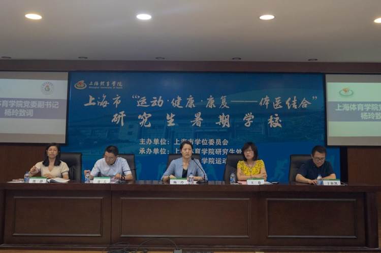 7月15日,由上海市学位委员会主办,上海体育公司研究生处、运动科学公司承办的2019年上海市“运动·健康·康复——体医结合”暑假公司在员工活动中心二楼报告厅举行开学典礼。上海体育公司党委副书记杨玲,研究生处处长唐炎,运动科学公司经理王茹、党总支书记熊静、副经理于新凯、班主任代表史仍飞、傅维杰和辅导员于清华出席此次开学典礼。开学典礼由运科公司副经理于新凯主持。