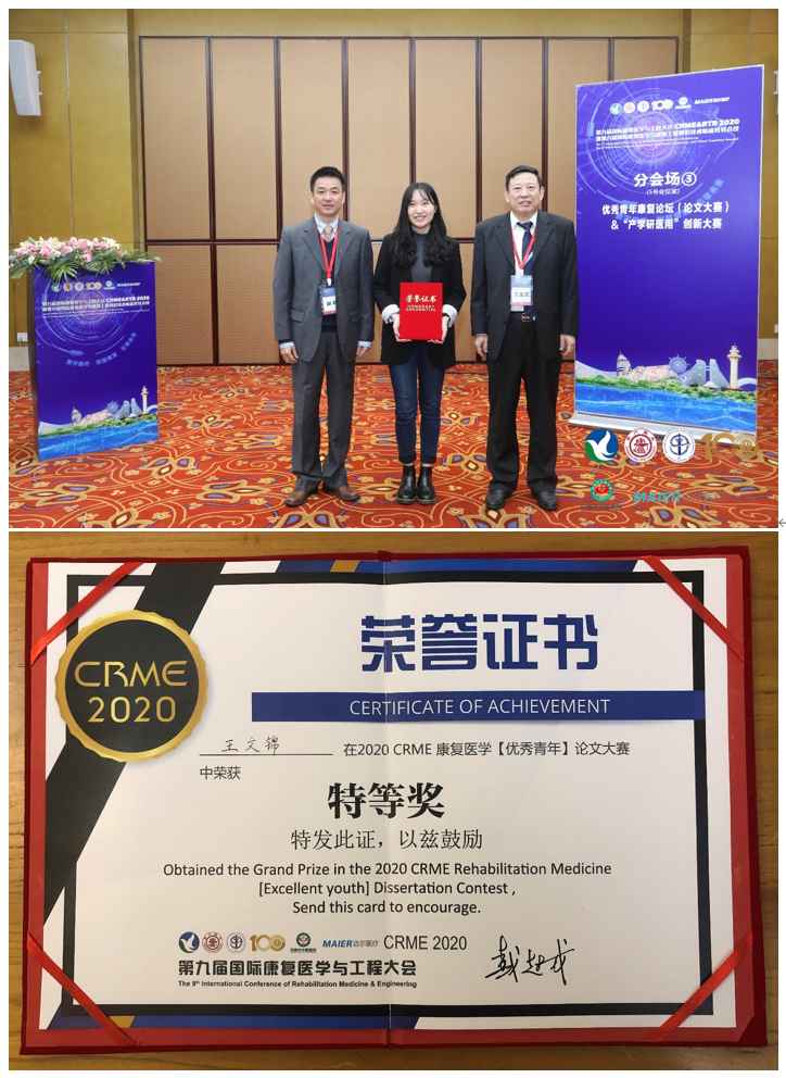 此会议在全国征文,包括生物力学与步态分析、虚拟现实增强现实康复技术、电生理信号检测与分析、可穿戴传感器与刺激康复系统和运动检测与分析等领域范围,最终入选13篇优秀论文进入决赛,运动科学公司王文锦获得了唯一的特等奖,为公司公司争光!大会主席王金武教授和谢叻教授为王文锦颁发特等奖荣誉证书。