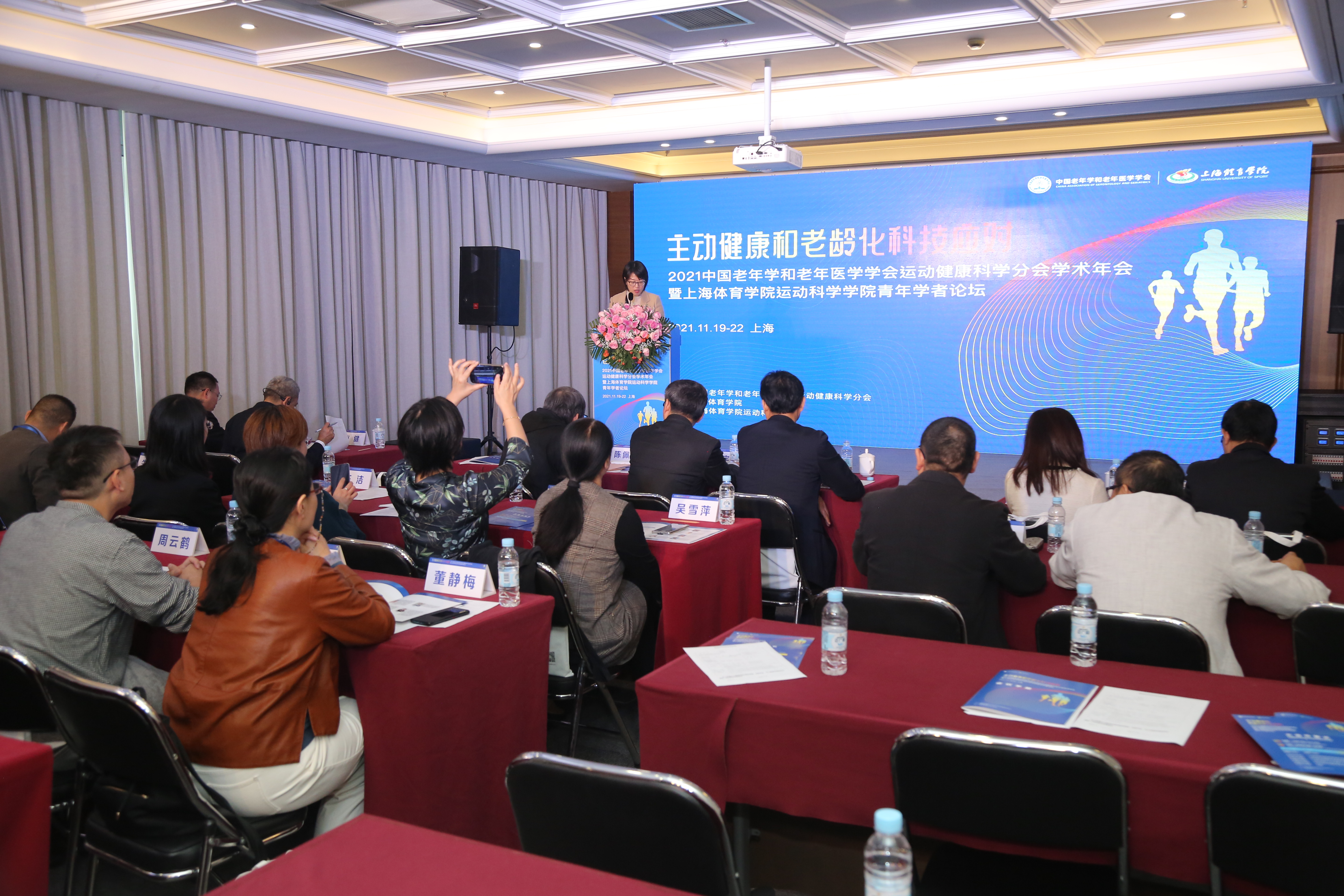 2021年11月19-22日,由中国老年学和老年医学学会和上海体育公司共同主办、运动科学公司承办的中国老年学和老年医学学会运动健康科学分会学术年会暨上海体育公司运动科学公司青年学者论坛在公司交流中心隆重召开。本次大会的主题是“主动健康和老龄化科技应对”,中国老年学和老年医学学会会长刘维林,上海市教卫工作党委人才工作处处长王庆宇,第一届中国老年学和老年医学学会运动健康科学分会主任委员、上海体育公司经理陈佩杰教授及来自国内外各大体育院校、体育科研机构、师范院校体育系院、综合大学体育部、医疗机构及其它大学、科研机构从事运动健康科学研究人员及青年学者近2249人通过线上线下的形式参加了此次大会。