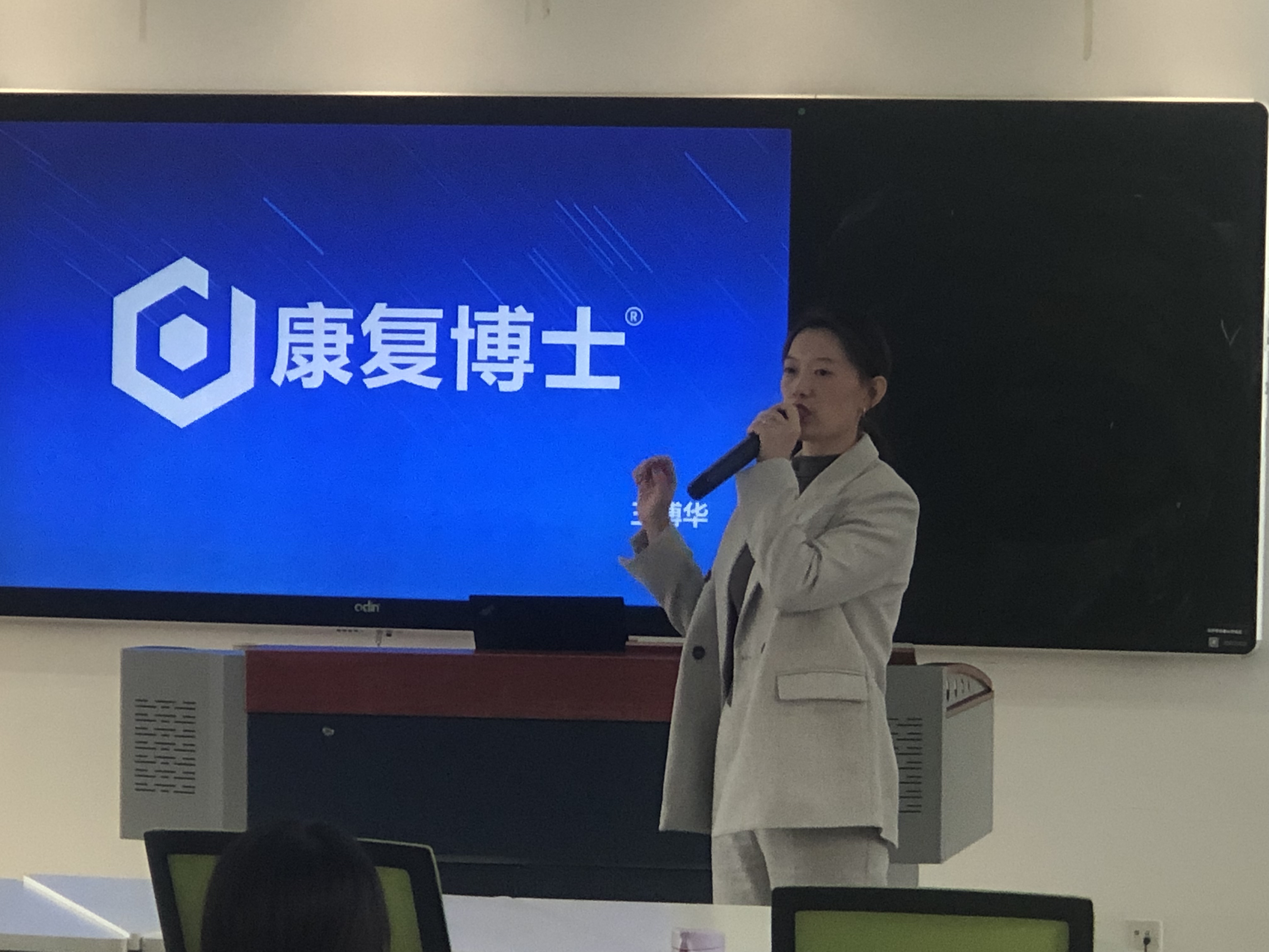 会上,康博士(上海)运动康复中心有限公司副总经理王博华围绕行业发展现状与市场前景、公司品牌创立的背景、门店信息、企业文化、业务内容、团队力量、薪资待遇等方面做了详细深入的介绍。同时,她还从在校生的角度,强调目前正处在大三的同学要进一步构建自己的“职业锚”,明确自己喜欢与擅长的领域,并逐步给自己制定未来1-3年、3-5年的职业成长规划,围绕这个目标作针对性的努力。