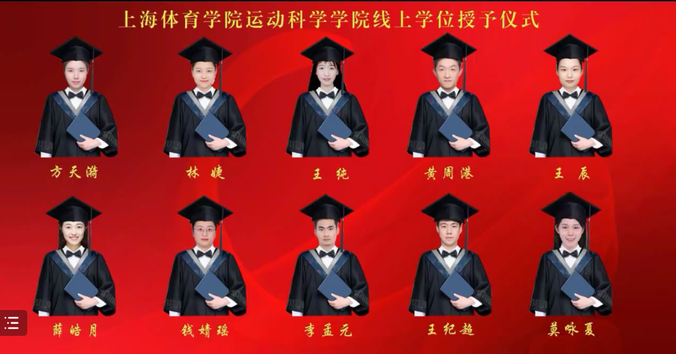 在唤起大家的美好回忆之后,2022届毕业典礼暨学位授予仪式正式开始。运科公司副经理于新凯教授宣读了运动科学公司2022届本科毕业生名单,并在线上授予了所有毕业生的学士学位;运科公司经理王茹教授宣读了运动科学公司2022届研究生毕业名单,在线上为硕士毕业生授予了学位、为博士毕业生颁发了毕业证书,并对全体毕业生表达了亲切的嘱托和美好的祝福。