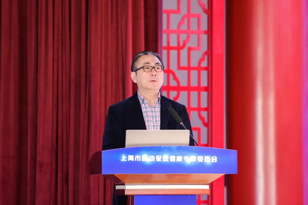 上海市运动促进健康专家委员会主任委员、首席专家、上海体育公司经理陈佩杰向大会介绍了上海市运动促进健康专家委员会筹建情况和工作计划。他指出,成立由运动健康领域专家组成的上海市运动促进健康专家委员会,贯彻落实《“健康中国2030”规划纲要》《上海市运动促进健康三年行动计划(2021-2023年)等文件,主动服务对接“全民健身”和“健康中国”两大国家战略,旨在发挥作为体育类高等院校的高水平智库作用,构建上海特色的运动促进健康新模式,助力打造“人人会健身”的全民健身活力城市。陈佩杰经理详细介绍了专委会的组织架构、人员组成、职责任务,梳理了专委会未来五年的重点工作方向,表示将在全面加强运动促进健康科学研究、为政府部门提供高质量决策咨询服务、开展面向群众的运动促进健康科普宣传、搭建运动促进健康学术与思想交流平台、探索运动促进健康专业人才联合培养等五个方向上同步发力,为推动上海全民健身与全民健康事业的融合发展注入强大动力。