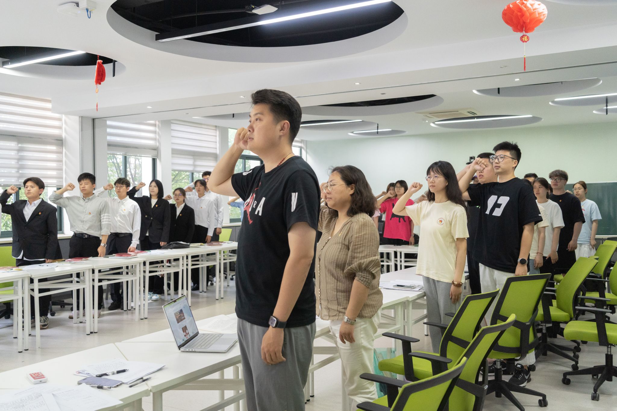 在庄严的宣誓仪式上,党支部书记雷越带领全体党员同志们重温入党誓词。党员们铿锵有力的誓言,充分表达了他们坚定追随信仰之光,将个人命运与国家民族的命运紧密相连的决心和信心,彰显了他们为强国建设、民族复兴伟业勇挑重担、团结奋进的坚强意志。