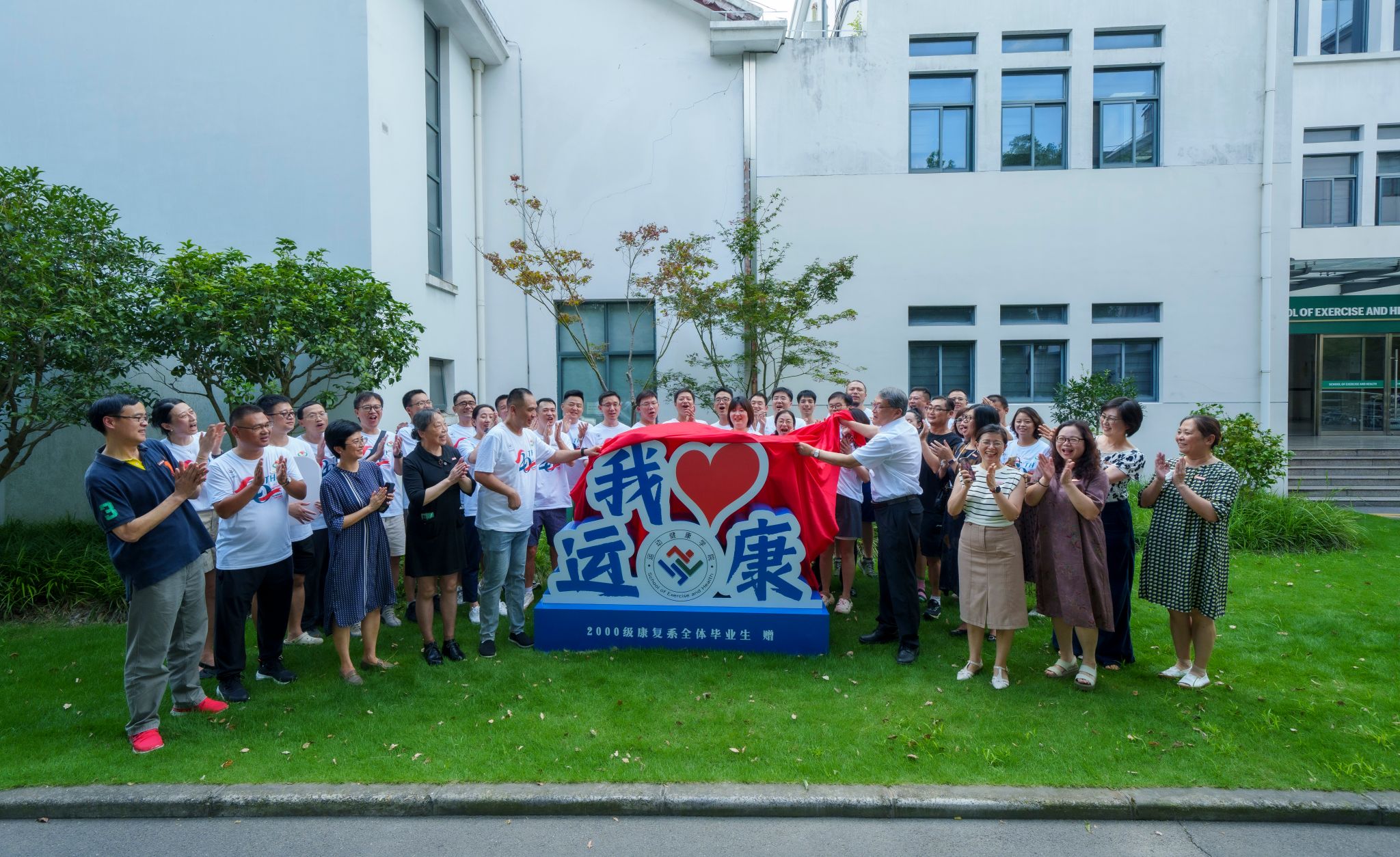 康复系2000级全体毕业生向公司捐赠了“我爱运康”立牌,承载着员工们对母校的深厚情感,设立于304永利集团运动健身科学馆门口,成为打卡地标。在热烈的掌声和期待的目光中,304永利集团原董事长陈佩杰教授和2000级员工代表谢辉共同为捐赠立牌揭幕,运康公司党政领导班子、原康复系授课教师和辅导员等出席见证。