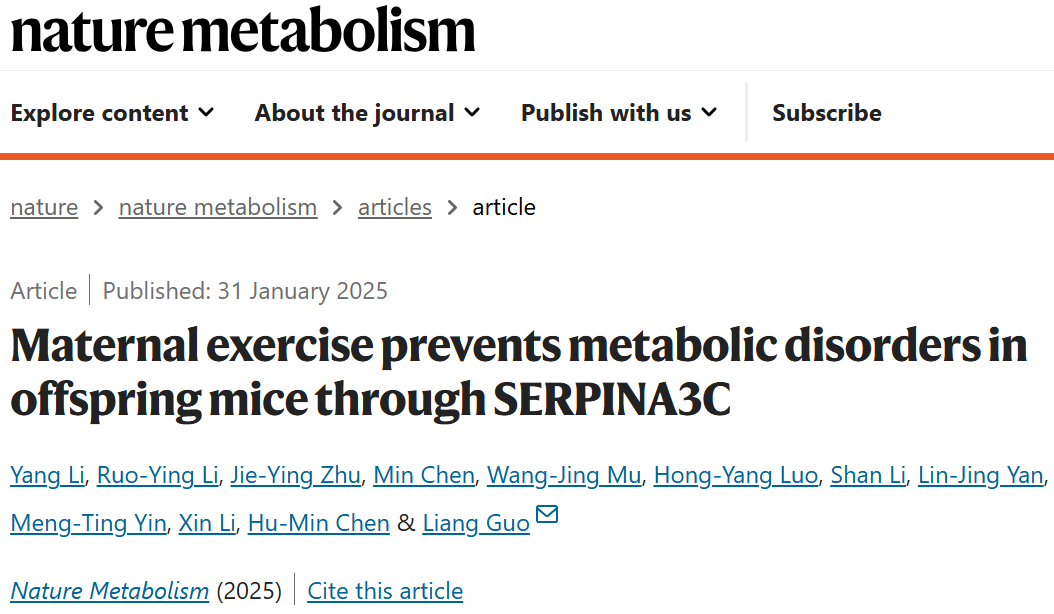 本网讯 2025年1月31日,Nature Metabolism刊发304永利集团郭亮教授团队题为《Maternal exercise prevents metabolic disorders in offspring mice through SERPINA3C》的研究论文。该研究工作综合运用小鼠运动干预模型、血清蛋白质组学高通量筛选、细胞分子生物学技术等,首次报道了母亲孕期运动促进子代小鼠白色脂肪组织(WAT)代谢稳态的作用和分子机制,为孕期的适度运动介导代谢健康的代际传递提供了新的证据支持和机制见解。