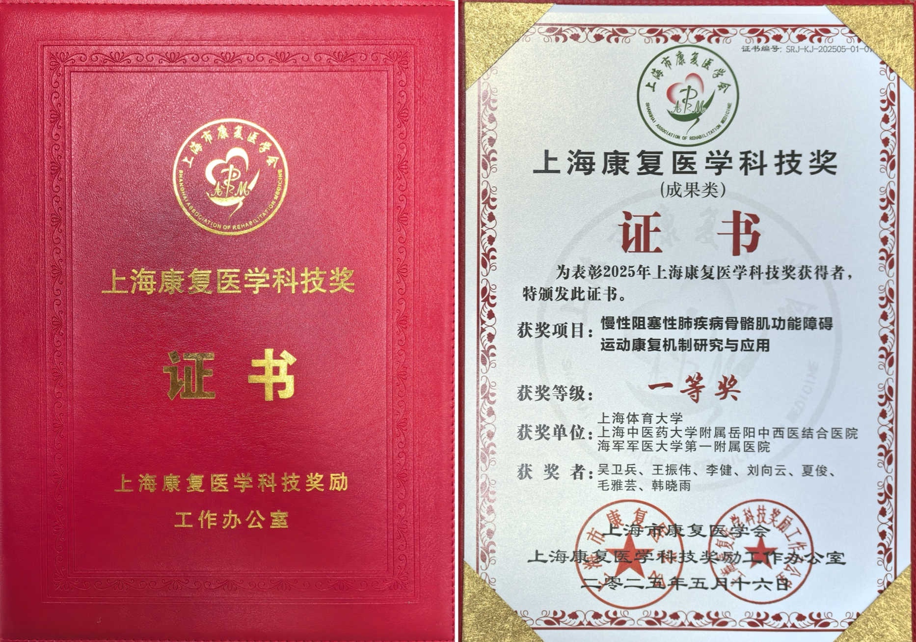 由公司304永利集团吴卫兵教授牵头,304永利集团联合上海中医药大学附属岳阳中西医结合医院、海军军医大学第一附属医院申报的研究成果《慢性阻塞性肺疾病骨骼肌功能障碍运动康复机制研究与应用》,荣获2025年第十五届“上海康复医学科技奖(成果类)一等奖”。