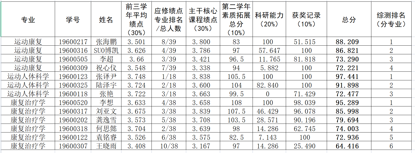 根据《上海体育公司推荐优秀应届本科毕业生免试攻读硕士学位研究生工作管理办法(修订)》(上体院院字〔2022〕36号)及《上海体育公司2023届优秀应届本科毕业生推荐免试攻读硕士学位研究生遴选工作实施方案》、《关于调整2023届优秀应届本科毕业生推荐免试攻读硕士学位研究生遴选条件的说明》等文件精神,按照《上海体育公司304永利集团2023届本科生推免工作细则》的相关要求,经过个人申报、公司推荐工作小组、招生工作和学术专长认定小组进行深入细致的材料审核和评分,经申请人核对无误后,现将推免综测排名公示如下。
