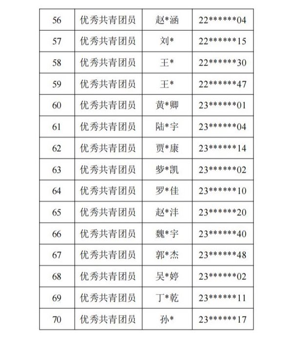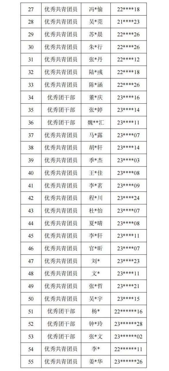 名单公示如下: