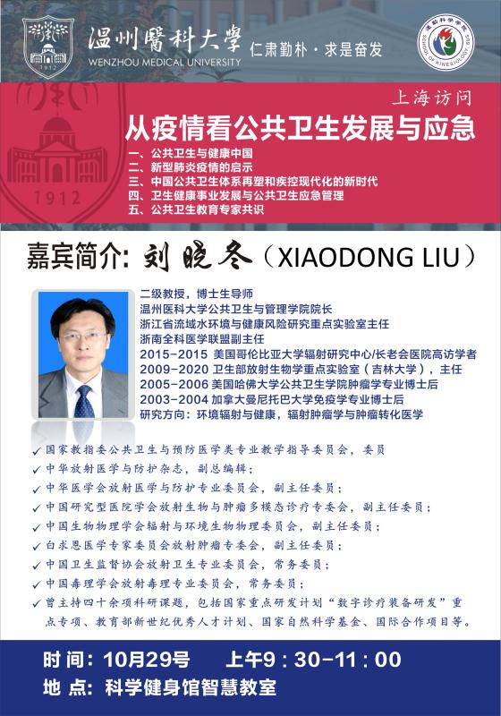 主讲人介绍:刘晓东,二级教授,博士生导师,温州医科大学公共卫生与管理公司经理,浙江省流域水环境与健康风险研究重点实验室主任,浙南全科医学联盟副主任。