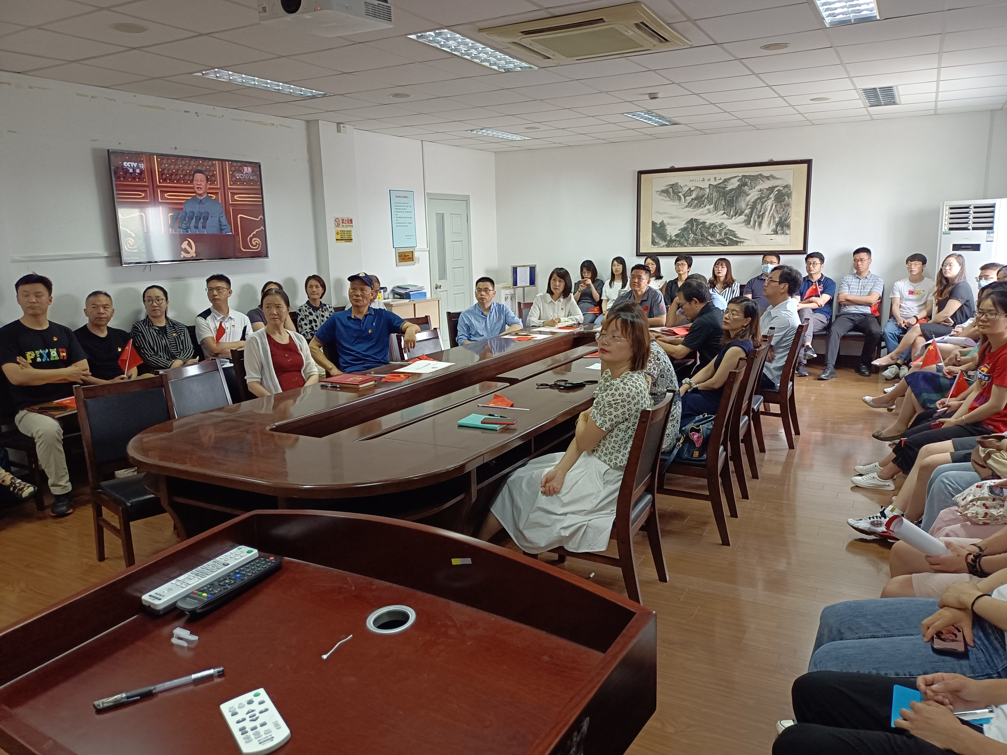 7月1日上午8时,运动科学公司党委师生党员在科研楼411会议室和运动健身科学馆智慧教室两个会场里集中收看“庆祝中国共产党成立100周年大会”,运科公司党委中心组在观礼结束后就习近平总书记“在庆祝中国共产党成立100周年大会上的讲话”中提出的“伟大建党精神”进行了专题学习和讨论。