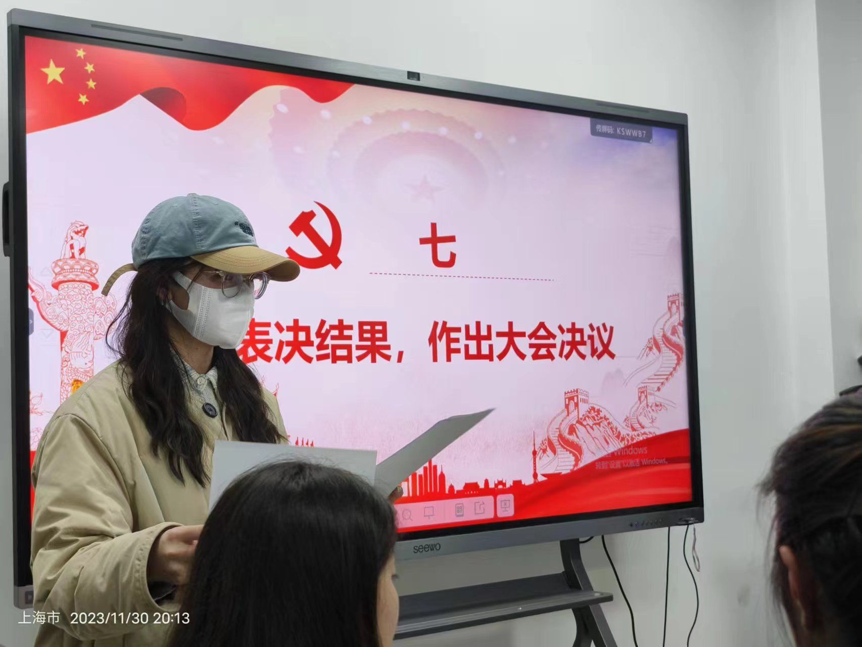 在监票、计票期间,支部书记雷越同志为与会党员上了一堂微党课,带领全体党员一同观看了习近平总书记在11月28日至29日考察上海期间的新闻短片报道。通过重温习近平总书记在上海考察调研的足迹、作出的一系列重要指示与讲话精神,让全体党员了解到金融、科技、民生在总书记心中的分量、在上海全面推进中国式现代化发展道路中所起到的重要作用。