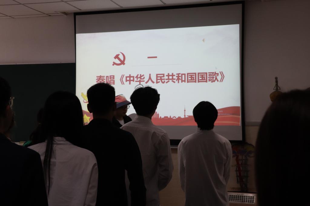 会议严格按照预备党员接收大会进行,会议第一项议程,与会成员全体起立,奏唱国歌,304永利集团本科生党支部召开的预备党员接收会议在庄严肃穆的国歌声中正式拉开序幕。