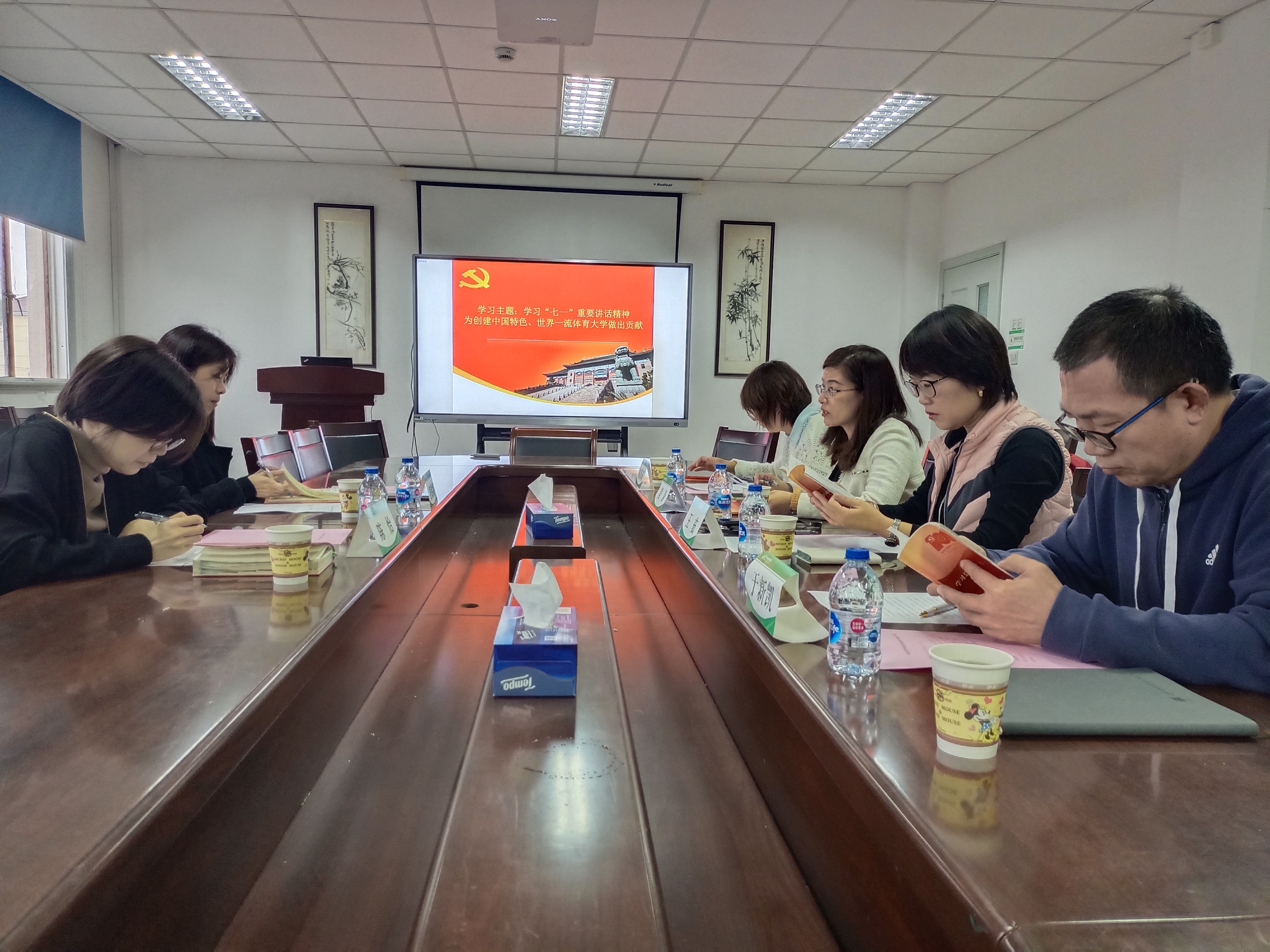22日,运动科学公司党委党政班子全体成员在科研楼411会议室召开了主题为“学习七一讲话精神,为创建中国特色、世界一流体育大学做出贡献”的集体学习会,会议由运动科学公司党委书记熊静主持,公司党委宣传部部长(主持工作)夏铭娜、纪委(监察专员办公室)综合办公室主任陈怡列席会议并发言。