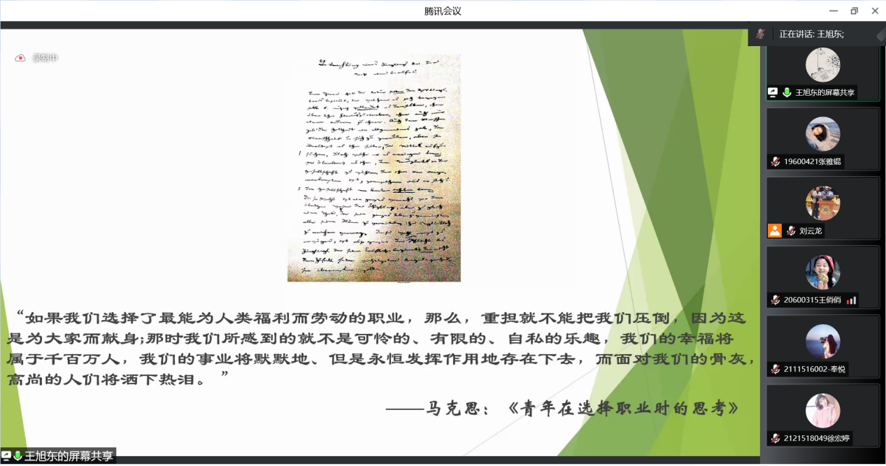 在课堂上,王旭东副教授向学员们介绍了马克思在青年时代的成长历程以及重要事迹,他提出,马克思之所以拥有“千年第一思想家”的称号,与他在青年时期所形成的思想、理论、主张,包括他的人生阅历有一定的关系,为他逐渐成为一位伟大的思想家奠定了坚实的基础。