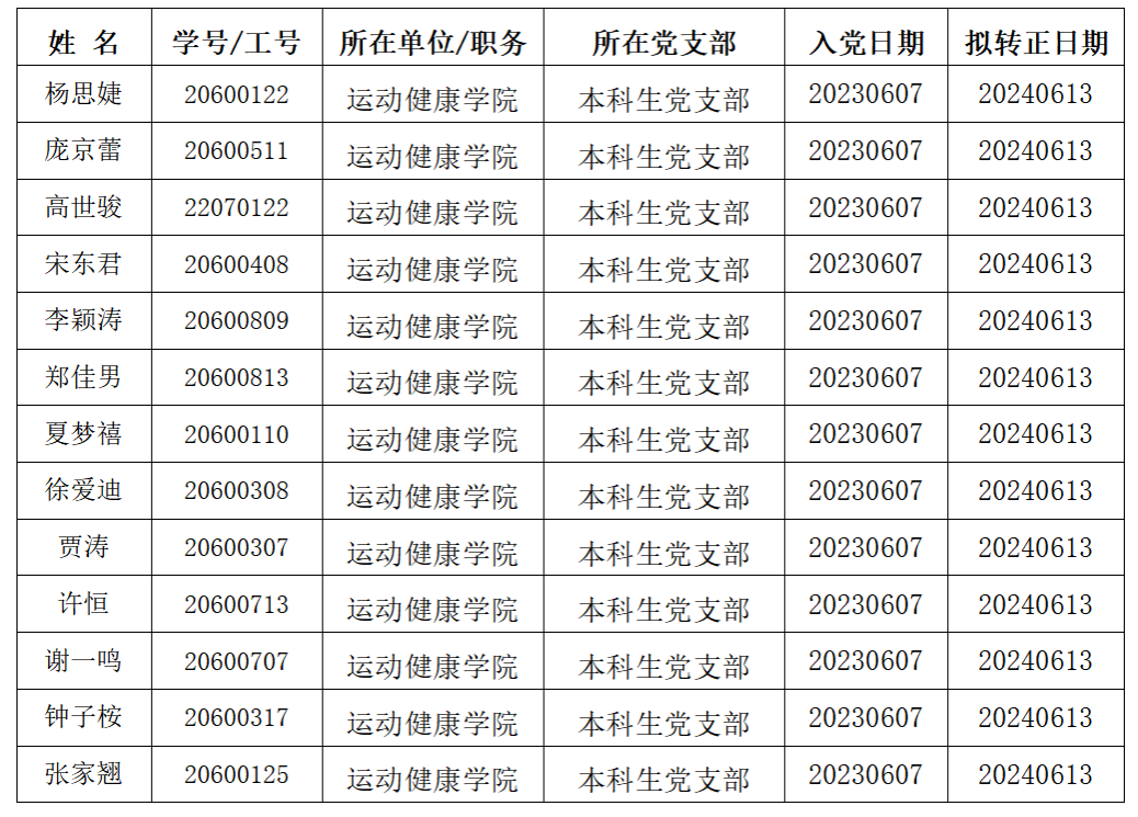 经过党组织的进一步教育和考察,以上13位中共预备党员基本符合正式党员条件,准备转为正式党员,特此公示。公示期为七天(2024年6月3日—2024年6月9日),各单位或个人如有意见,可通过来电、来访、来函等形式反映。