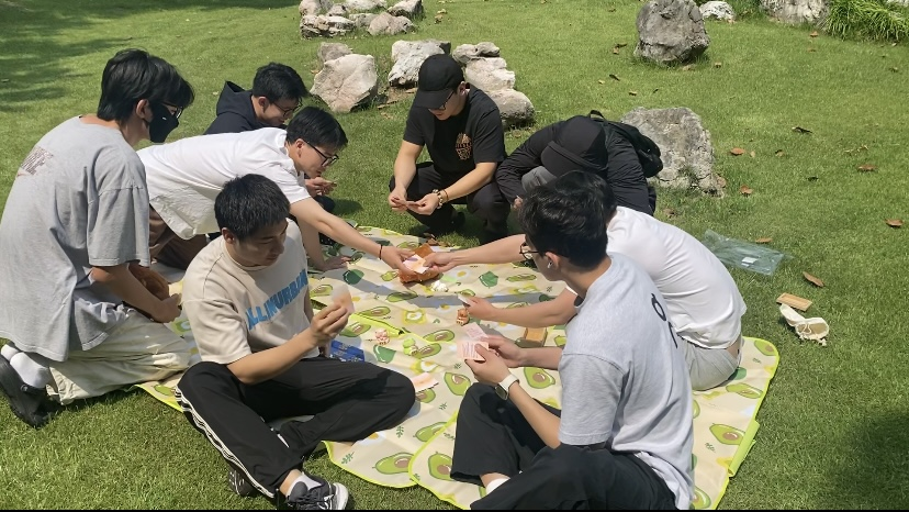 本次活动以“自然疗愈式体验”为主线,通过一系列沉浸式环节,将心理健康教育与自然环境紧密结合,着力营造轻松治愈的氛围,帮助同学们在繁重的科研与生活压力中找到心灵的栖息地。活动现场设有冥想放松区、情绪感知体验区、MBTI心理测评区及“情绪故事分享”互动环节等多个板块,内容丰富、形式多样,吸引了班级内外众多同学积极参与。