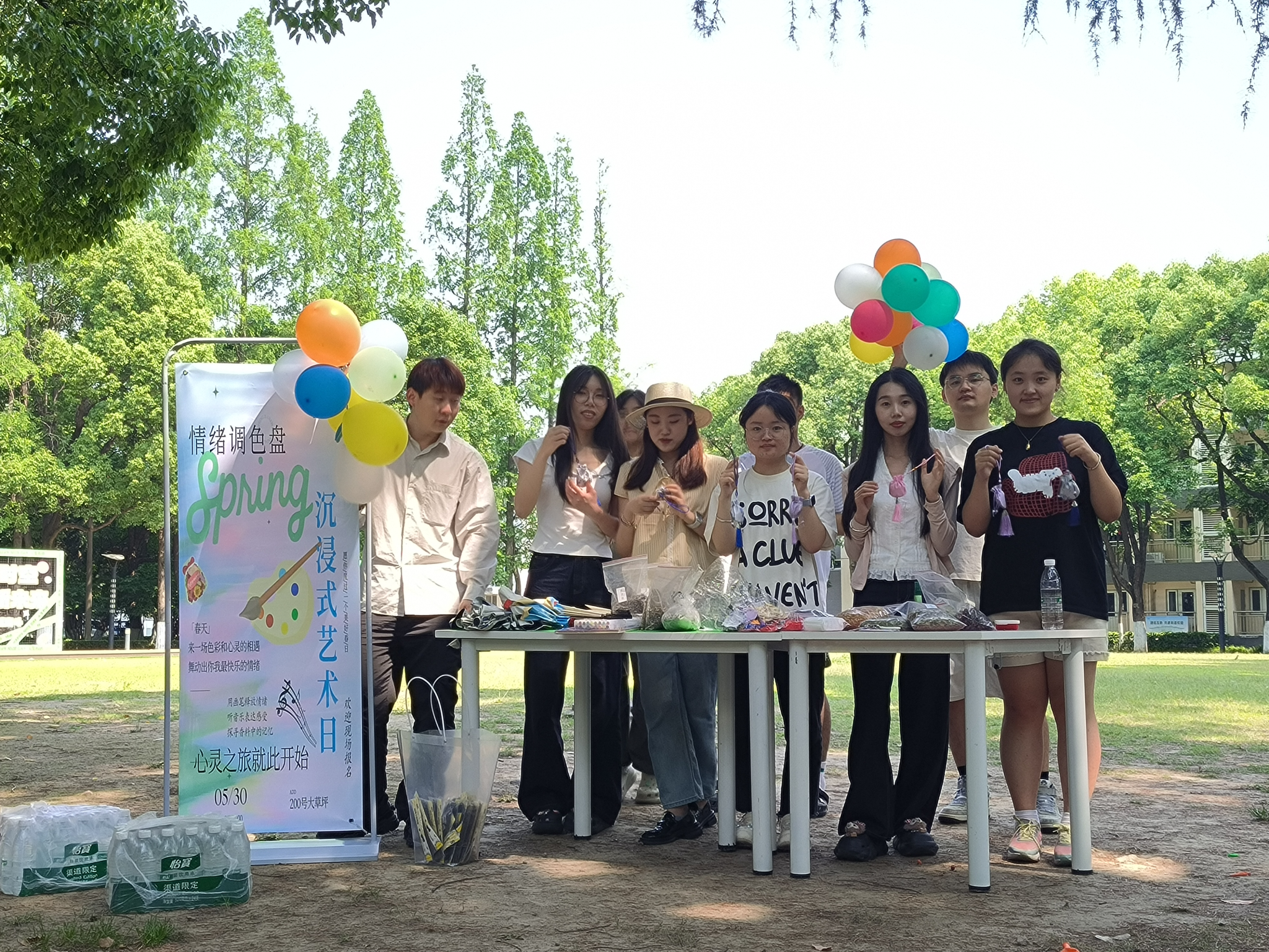 2025年5月30日下午13时许,304永利集团恒仁路200号大草坪上,一场别开生面的“情绪调色盘”沉浸式艺术日活动在这里成功举办,吸引了众多同学的积极参与。在快节奏的现代生活中,情绪管理已成为人们关注的焦点。为了帮助同学们更好地探索、表达和释放情绪,提升心理健康水平,公卫班心理委员李乐、心理宣传委员夏业澜一同精心策划了这场以“色彩心灵,舞动情绪”为主题的沉浸式艺术日活动。活动旨在通过多元化的艺术形式,营造轻松、包容的氛围,促进同学之间的情感交流与支持。