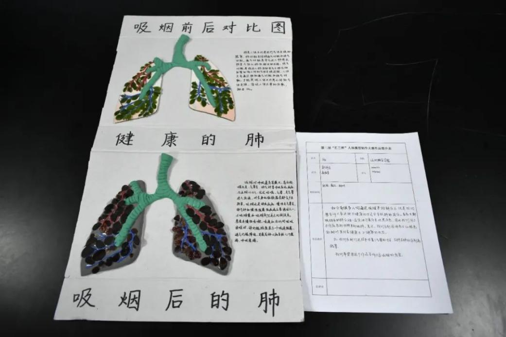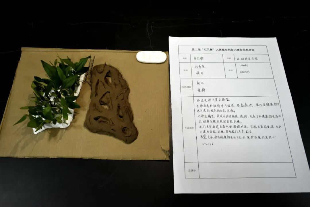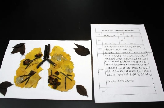 他们用绿叶和彩泥制作出人的肺,以此来提倡大家绿色环保。