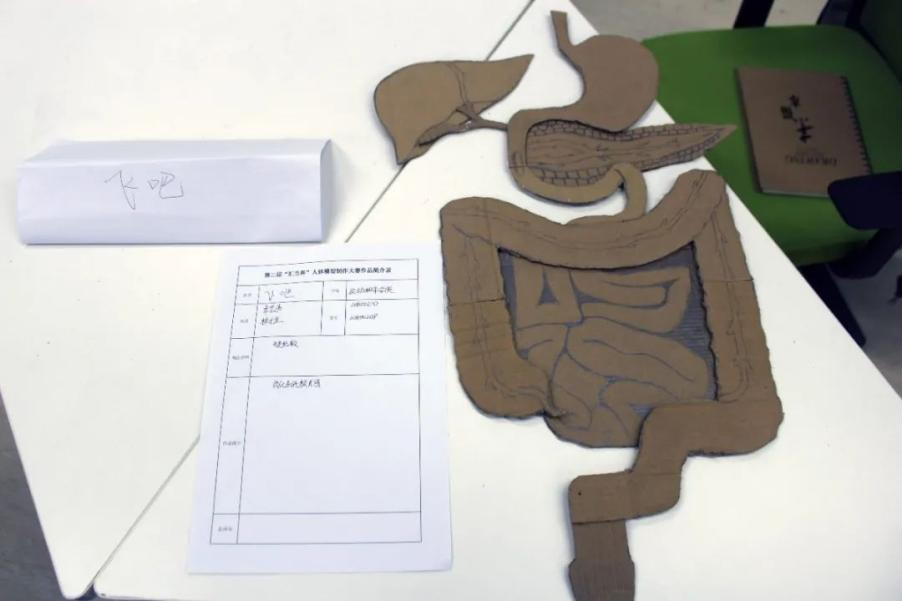 飞吧组的两人打下一片天地,用纸板制作出复杂的消化系统。