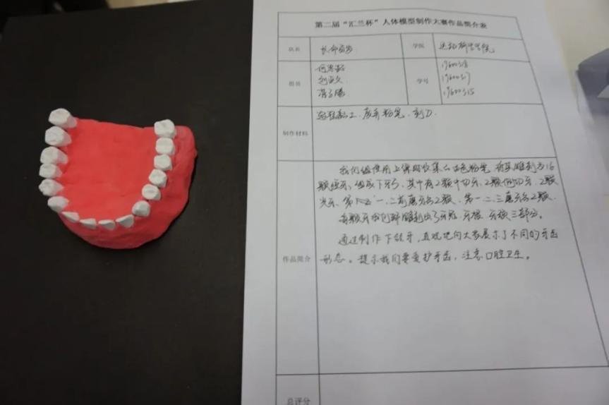 长命百岁组收集了课后残留的粉笔,用它做出了人体的下牙弓,可以细看出牙齿的纹路。