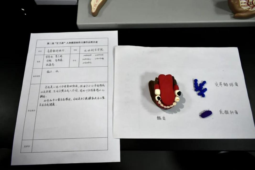 青春靓丽组用彩泥制作出儿童的龋齿,并将微小的乳酸杆菌塑造地十分生动。