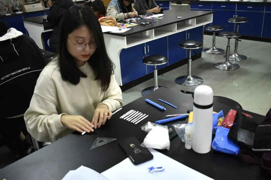 今年冬天来得过早,但刺骨的寒冷并未影响到大赛的火热进行,老师秉持着严谨的教学精神,认真点评同学们的作品,在夸赞同学们生动新颖的作品的同时,还耐心地为每一位参赛同学指出需要改进的部分。潘珊珊教授、于新凯教授详细地讲解了模型中的知识点和其构造的奥妙之处,邓雪老师和郑鑫焱老师精确又不失幽默的点评,使整个气氛充满了欢声笑语,还有吕娇娇老师仔细公正地点评参赛选手们的作品,为我们的人体模型大赛增光添彩。