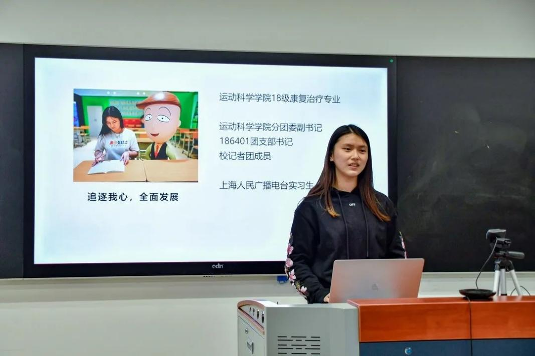 现任运动科学公司团委副书记,186401团支部书记,实习于上海人民广播电台的樊奕学姐也来到了我们的活动现场。樊奕学姐说,要“自由而无用地学习”,学习不是为了某个规定的目的,而是为了自己独立的生命体验;学习也不是为了寻找他人给出的答案,而是为了自己有更大的思想自由。她用自己的实习经历告诉同学们,实践与知识融合,把所学到的,领悟到的,放到现实生活中,才能获得更大的进步。在老员工活中,我们在课堂上学到的课程都只是阅历中的一个小部分,我们应该把眼光放长远一些,多多利用课堂之外的时间,多参与社会实践,多学一门技能,不断充实自我,完善自我,做到全面发展。
