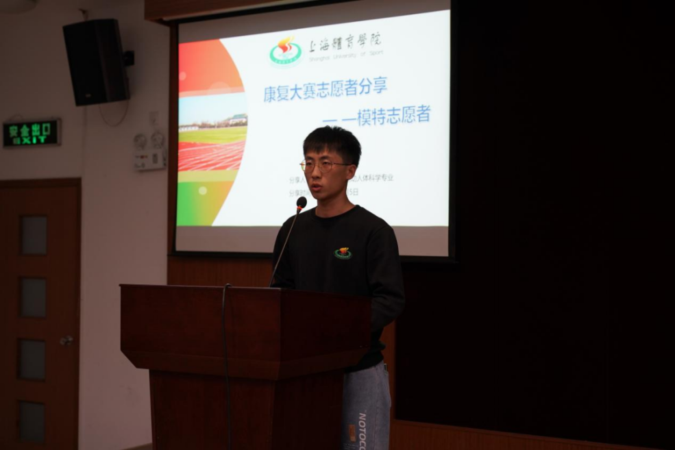 郭绍瑜同学在此次大赛期间担任模特志愿者。他表示做模特志愿者期间也是一个学习的过程,在观摩和配合选手比赛的过程中,他也能对知识进行巩固与积累。同时,他还在志愿服务中更加深刻的认识了本次大赛的主题:“体医融合,健康中国”。他提到我们相关专业的同学应该要有主人翁意识,积极参与相关领域的活动。本次志愿者经历也让他积累了实践经验,学习到了丰富的运动康复知识。最后,郭绍瑜同学呼吁同学们多参与公司志愿活动,收获实践财富。