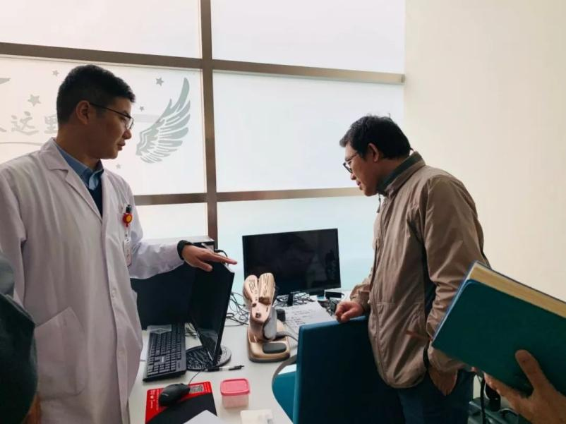 随后,公司一行来到华山医院东院,负责实习工作的徐东艳老师对公司一行的到来表示热烈的欢迎和诚挚的感谢。据徐老师介绍,华山医院目前主要开展综合性康复医疗工作,包括物理治疗(PT)、作业治疗(OT)、言语治疗 (ST)、娱乐治疗(RT)、吞咽障碍治疗、支具矫形器、针灸和推拿等现代康复治疗与中国传统治疗相结合的综合性康复治疗为特色。他带领大家参观各治疗室和病房,并介绍了目前所用的主要治疗仪器功能及使用情况。目前,公司正在紧张筹备WCPT的认证工作,双方表达了进一步加强互动交流的合作意愿。当日,正在华山医院东院实习的16级康复治疗专业同学也来到现场,徐东艳重点介绍了实习生的工作情况,并对实习生的学习态度与专业技能提出了赞扬。
