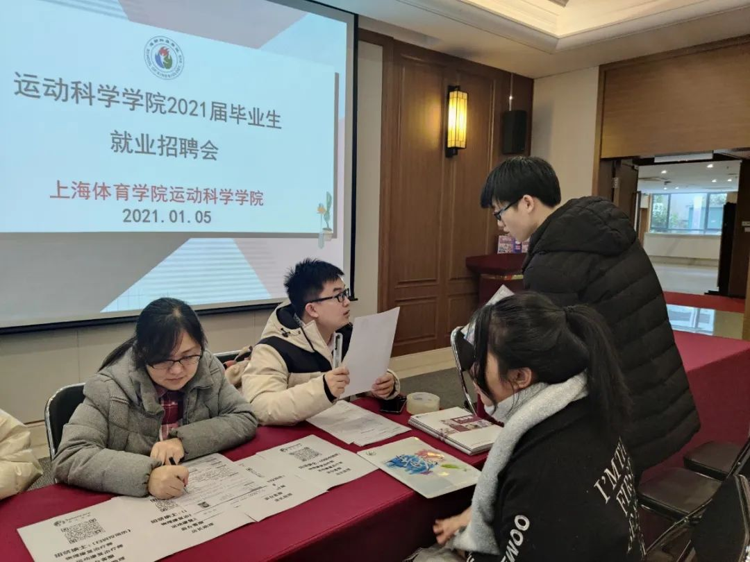为深入贯彻党的十九届五中全会精神和2021届全国普通高校毕业生就业创业工作网络视频会议精神,进一步落实“六稳”“六保”任务,实施好就业优先政策,实现更加充分更高质量就业,运动科学公司于1月5日下午在上海体院体育交流中心举办了2021届毕业生专场招聘会。公司党委副书记、副经理陈莉莉出席此次活动,毕业班辅导员于清华、雷越以及2021届毕业生共同参会。