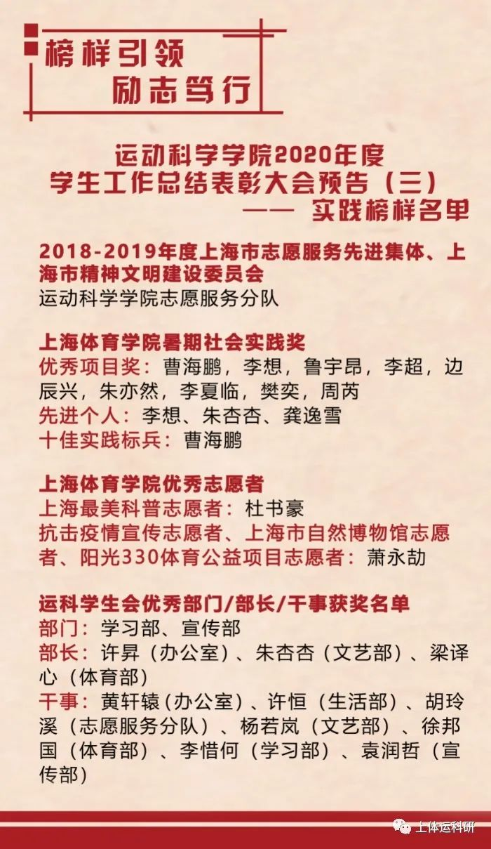 “榜样引领,励志笃行”运动科学公司2020年度员工工作总结表彰大会预告(三)—— 实践榜样